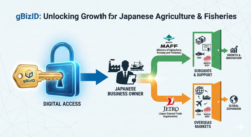 特に、水産物や黒毛和牛を海外へ展開しようと考えている事業者にとって、gBizIDは単なるIDではありません。国からの強力なバックアップを受けるための「通行許可証」とも言える存在です。