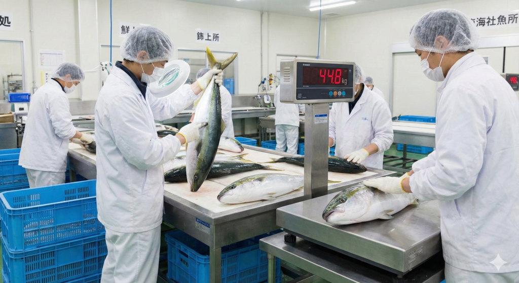 水揚げから「輸出仕様」への選別プロセス